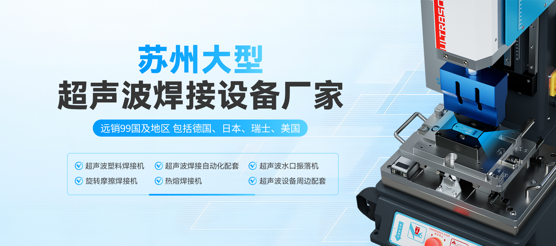 為海內(nèi)外各行業(yè)、企業(yè)提供了大量穩(wěn)定性強(qiáng)的優(yōu)質(zhì)超聲波塑焊設(shè)備及應(yīng)用解決方案